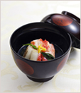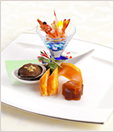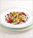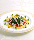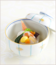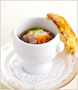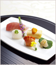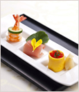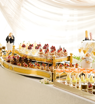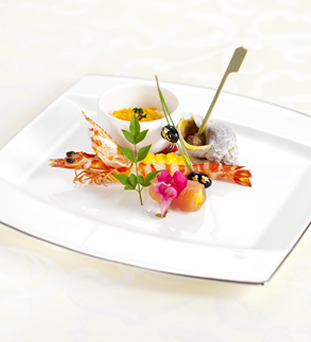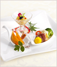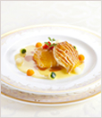 - 「祝い肴・オードブル」「スープ」「お造り」等のカテゴリー内にて、フレンチと和食に料理が分かれています。すべてのカテゴリーでフレンチのみをセレクトすれば「フレンチ料理コース」、和食のみをセレクトすれば「和食料理コース」、フレンチと和食を組み合わせてセレクトすれば「和洋折衷コース」となります。全体のバランスやボリュームなど不安な点がございましたら、プランナーにご相談ください。好みやご要望に応じてコースをご提案させていただきますので、まずは好きなものを自由にお選びください